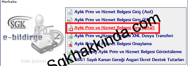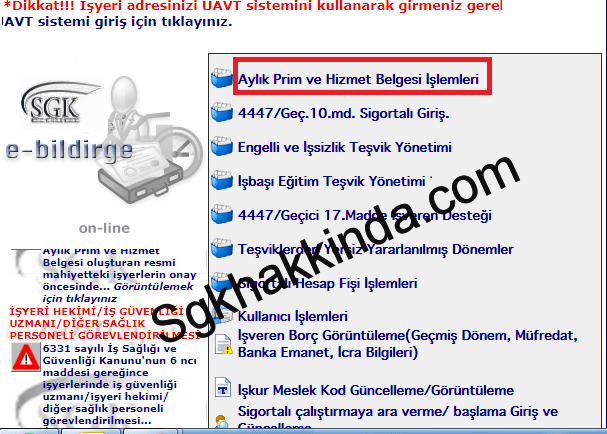 Sisteme giriş yaptıktan sonra karşımıza aşağıda ki ekran gelecek ve o ekranda en üstte bulunan Aylık Prim ve Hizmet İşlemleri bölümüne giriş yapacağız.